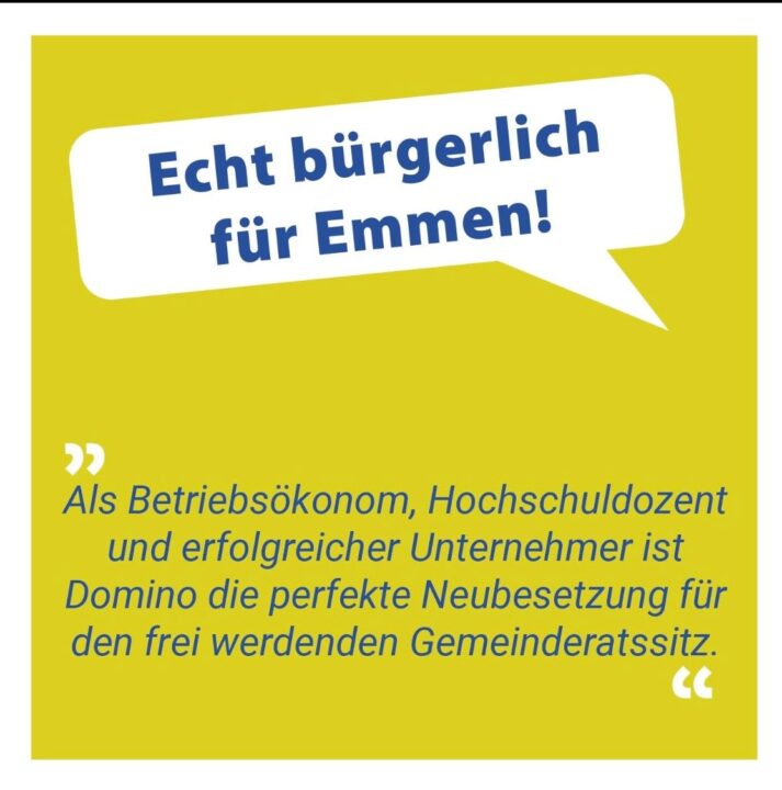Die SVP Emmen nominiert einstimmig den 47-jährigen Betriebsökonom, Hochschuldozenten, Unternehmer und dreifachen Familienvater Domino Anselmi als Nachfolger von Patrick Schnellmann für den Gemeinderat in Emmen.